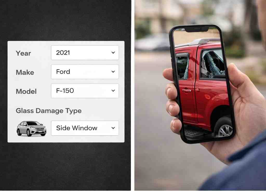 Provide your vehicle make, model, year, and glass damage type.