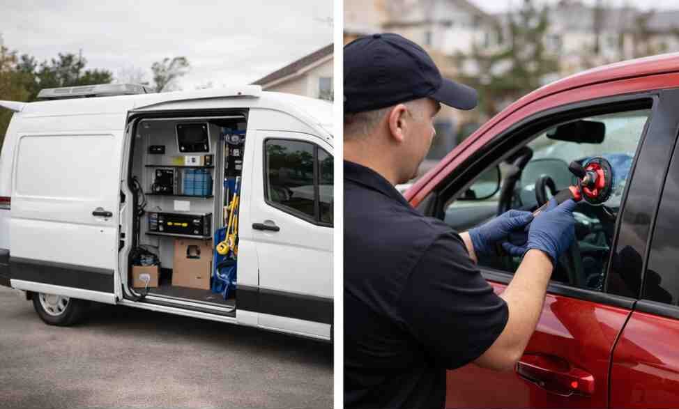 A mobile unit completes the repair or replacement at your location.