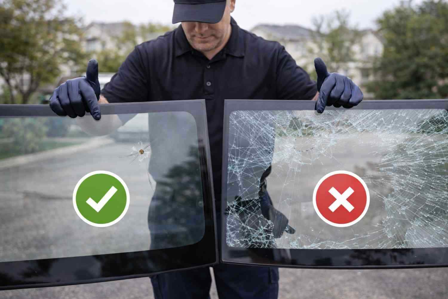Not all damage requires replacement. The decision is based on crack length, location, depth, and overall glass condition.