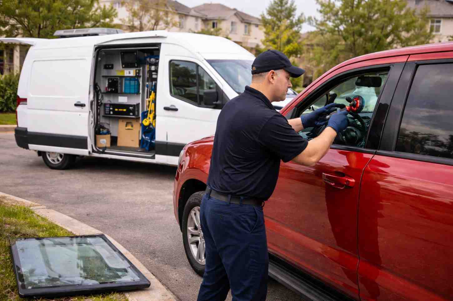 Our rear window replacement service in Frisco restores function and protection through complete glass removal, professional installation, and post-install testing.